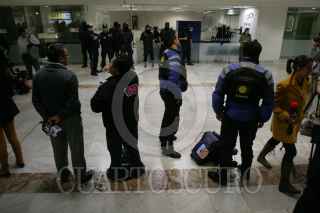 MÉXICO, D.F. 23ENERO2013.-Custodiado por policias federales el Instituto Nacional de Migración (INMI), en el Aereopuerto Internacional de la Ciudad de México, nunca recibió la visita de la recién liberada Florence Cassez, pues la misma policia que la arrestó esta vez la cubrió de los medios de comunicación en todo momento pasandola por otra puerta. FOTO: JUAN PABLO ZAMORA /CUARTOSCURO.COM