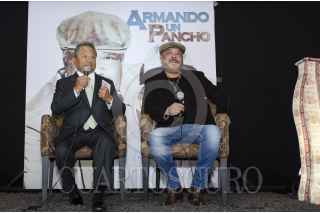 MÉXICO, D.F., 25ENERO2013.- Armando Manzanero y Francisco Céspedes, cantautores mexicano y cubano, respectivamente, ofrecieron una conferencia de prensa en la que presentaron su nuevo disco "Armando un Pancho", en la cual consiste en éxitos conocidos de ambos cantantes interpretados por ellos mismos. FOTO: MISAEL VALTIERRA / CUARTOSCURO.COM