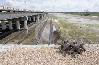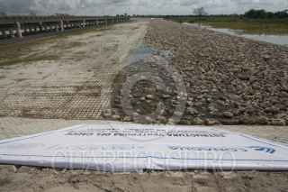VILLAHERMOSA, TABASCO, 25ENERO2013.- Elementos de la Policía Estatal resguardan y vigilan toda el área del bordo de protección que realiza en trabajos aun no concluidos por la CONAGUA. Lo anterior debido a que el gobernador Arturo Núñez Jiménez, junto a David Korenfeld Federman, director general de CONAGUA realizarían un recorrido para observar a detalle dicha obra que contempla el Plan Hídrico Integral de Tabasco. A pesar de que los medios informativos locales hicieron lo posible por ser testigos en estos hechos; autoridades del gobierno no permitieron el acceso, sin embargo se pudo observar en un recorrido que dicha obra, en las inmediaciones de la ranchería Dos Montes, presenta algunas deficiencias. FOTO: MARCO POLO GUZMÁN HERNÁNDEZ /CUARTOSCURO.COM