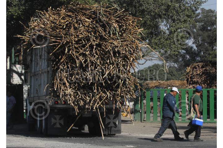 ZACATEPEC, MORELOS., 25ENERO2013.- Toneladas de costales de azúcar fueron trasladados a la cancha Morelos, que pertenece al Ingenio azucarero ‘Emiliano Zapata’ de Zacatepec; debido a que las bodegas de dicho ingenio se encuentran a su maxima capacidad. Cañeros morelenses mantienen guardias a las afueras de las bodegas del Ingenio ante la falta de respuesta de las autoridades para estabilizar el precio del azúcar. FOTO: SAÚL LÓPEZ / CUARTOSCURO.COM