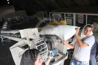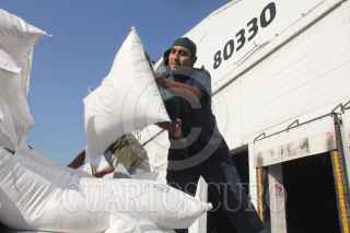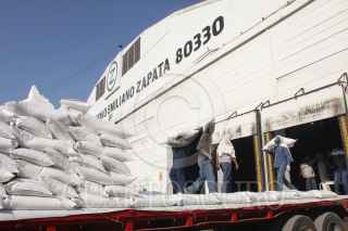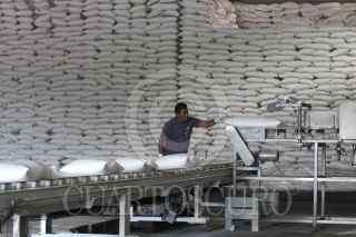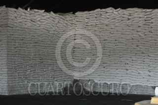 ZACATEPEC, MORELOS., 25ENERO2013.- Toneladas de costales de azúcar fueron trasladados a la cancha Morelos, que pertenece al Ingenio azucarero ‘Emiliano Zapata’ de Zacatepec; debido a que las bodegas de dicho ingenio se encuentran a su maxima capacidad. Cañeros morelenses mantienen guardias a las afueras de las bodegas del Ingenio ante la falta de respuesta de las autoridades para estabilizar el precio del azúcar. FOTO: SAÚL LÓPEZ / CUARTOSCURO.COM