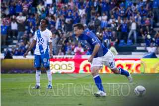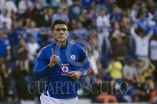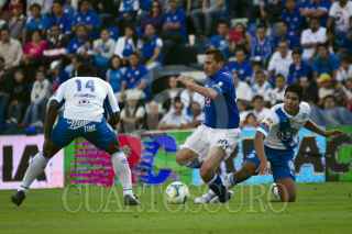 MÉXICO., D.F., 26ENERO2013.- Christian Giménez colaboró con un gol en la goleada al Puebla, quienes sucumbieron ante la artillería cementera, en partido correspondiente a la jornada 4, en el Estadio Azul. FOTOS: MISAEL VALTIERRA / CUARTOSCURO.COM