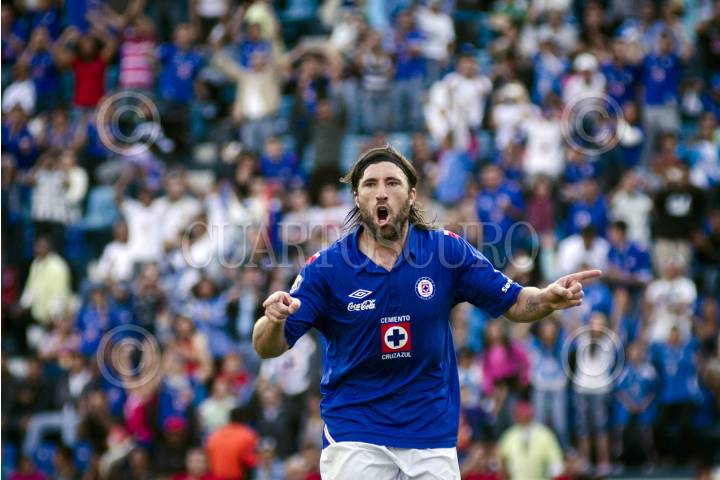 MÉXICO., D.F., 26ENERO2013.- Christian Giménez colaboró con un gol en la goleada al Puebla, quienes sucumbieron ante la artillería cementera, en partido correspondiente a la jornada 4, en el Estadio Azul. FOTOS: MISAEL VALTIERRA / CUARTOSCURO.COM