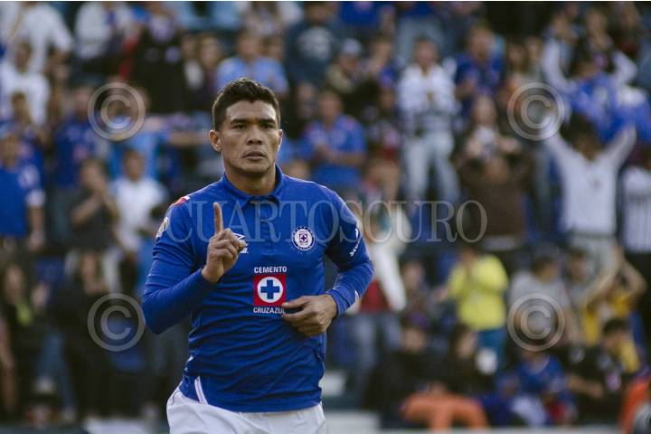 MÉXICO., D.F., 26ENERO2013.- Christian Giménez colaboró con un gol en la goleada al Puebla, quienes sucumbieron ante la artillería cementera, en partido correspondiente a la jornada 4, en el Estadio Azul. FOTOS: MISAEL VALTIERRA / CUARTOSCURO.COM