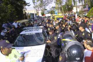 MÉXICO, D.F. 27ENERO2013- Dos elementos de la policía de investigación, fueron asegurados por elementos de la policía capitalina, luego de que vecinos de la colonia Panamericana los lincharían presuntamente por ingresar a un domicilio de manera ilegal de donde sustrajeron varios artículos de valor. Los detenidos fueron trasladados a la Agencia 50 del MP a la Fiscalia especializada de Servidores Publicos. FOTO: LUIS CARBAYO / CUARTOSCURO.COM