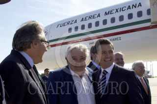 MONTEVIDEO, URUGUAY 28ENERO2013.- Enrique Peña Nieto llega al aeropuerto internacional de Carrasco General Cesáreo L. Berisso, de Montevideo, en la República Oriental del Uruguay, donde sostuvo una reunión privada con su homólogo uruguayo, José Mujica en la Residencia Suárez. Este es el primer país al que realiza una visita oficial. FOTO: PRESIDENCIA /CUARTOSCURO.COM