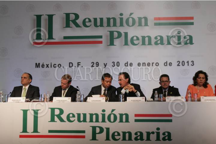 MÉXICO, D.F. 29ENERO2013.- Las fracciones parlamentarias del PRI y PVEM en la cámara baja, iniciaron la II Reunión Parlamentaria en un hotel de Polanco. El evento fué inagurado por Cesar Camacho Quiróz, presidente nacional del PRI, Arturo Escobar, del PVEM, Manlio Falio Beltrones, coordinador parlamentario en san lázaro del tricolor, Ivonne Ortega, secretaria general del PRI, entre otros. Al evento acudiran los secretarios de Gobernación, Miguel Angel Osorio Chong, de Hacienda, Luis Videgaray, y de Energía, Pedro Joaquín Coldwell durante todo el día. FOTO: JUAN PABLO ZAMORA /CUARTOSCURO.COM