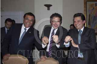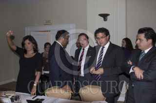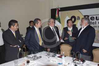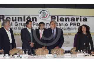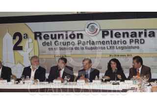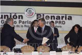 MÉXICO, D.F., 29ENERO2013.- El ingeniero Cuahtémoc Cárdenas acudió como invitado especial a la 2a Reunión Plenaria de los Senadores del PRD, en el hotel Four Season. En la imagen se observa a los senadores Alejandro Encinas, Miguel Barbosa, Dolores Padierna y Luis Sánchez. FOTO: MOISÉS PABLO /CUARTOSCURO.COM