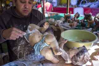 MÉXICO, D.F., 29ENERO2013.- Cientos de personas acudieron a los talleres de reparación de Niños Dios ubicados en la calle de Talavera en Centro de la Ciudad donde también se vende ropa y accesorios necesarios para el próximo 2 de febrero Día de la Candelaria, día en que se llevan a bendecir ya que según la biblia es el día en que el Niño Jesús fue presentado en el Templo por sus Padres. FOTO: ENRIQUE ORDÓÑEZ /CUARTOSCURO.COM