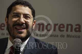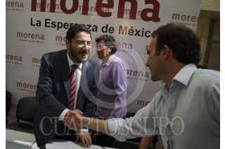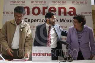 MÉXICO, D.F., 29ENERO2013.- Martín Batres, presidente del Movimiento de Regeneración Nacional MORENA; Tomás Pliego, responsable de Organización y Bertha Lujan, secretaria general; durante la conferencia de prensa para dar a conocer el primer corte de afiliados al partido. Hasta este día, que se cumplen 20 días de apertura del registro, el número de afiliados en todo el país es de 80 mil. FOTO: ADOLFO VALTIERRA /CUARTOSCURO.COM