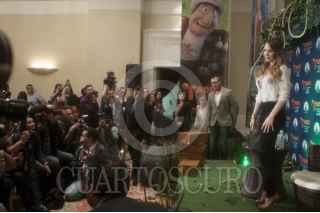 MÉXICO, D.F., 29ENERO2013.- Con un retraso de 45 minutos y preguntas condicionadas por parte de la productora de la cinta "Tadeo. El Explorador Perdido" la cantante Belinda presentó la cinta que se estrena el próximo 1 de Feberero. Ante la insistencia de un reportero por hacer preguntas "fuera de lugar" la cantante pidió al personal de seguridad desalojaran al reportero. FOTO: FRANCISCO RODRÍGUEZ /CUARTOSCURO.COM