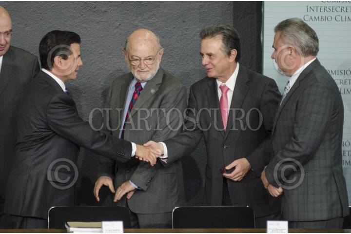 MÉXICO, D.F., 29ENERO2013.- Enrique Peña Nieto, Presidente de México, conversa con Mario Molina, premio nobel de química y José Sarukhan, ex-rector de la UNAM, durante la instalación de la comisión de cambio climático, en la residencia de Los Pinos. FOTO: MISAEL VALTIERRA /CUARTOSCURO.COM
