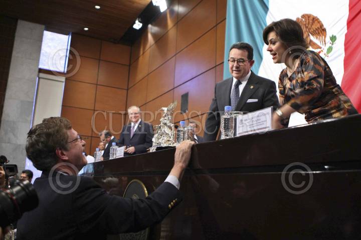 MÉXICO, D.F., 30ENERO2013.- El presidente de la Comisión Nacional de los Derechos Humanos (CNDH), Raúl Plascencia, acudio ante la Comisión Permanente del Congreso de la Unión para rendir su informe anual de labores al frente de ese organismo, durante su discurso alertó sobre la proliferación de acciones de autodefensa y la decisión de tomar la justicia por mano propia en comunidades de estados como Guerrero, debido a la alta percepción de inseguridad y falta de confianza en las autoridades. FOTO: CUARTOSCURO.COM