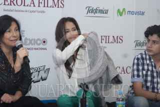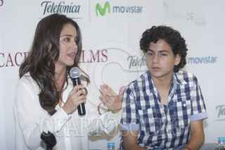MÉXICO, D.F., 30ENERO2013.- Los actores, Ana Claudia Talancon y Sebastian Rivera, presentaron en conferencia de prensa la cinta "El Sueño de Iván" de Roberto Santiago y que se estrena el 14 de Febrero con 50 copias. La cinta aborda los sueños de un niño de 11 años que desea jugar futbol con los grandes y vive su primera aventura de amor. Al finalizar la conferencia de prensa fueron acompañados por los jugadores de futbol del Culb Toluca, Edgar Benítez, Marvín Cabrera y Fausto Pinto. FOTO: FRANCISCO RODRÍGUEZ /CUARTOSCURO.COM