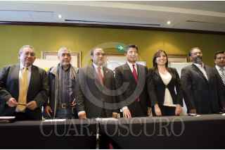 MÉXICO, D.F., 31ENERO2013.- Sergio, Arredondo Olvera, de la Federación Nacional de Municipios de México; Eduardo Rivera, presidente de la Asosiación Nacional de Alcaldes ANAC; Leticia Quezada presidenta de la Asociación de Autoridades Locales de México AALMA, en la rueda de prensa Asociaciones Municipales que se dio con el objetivo de dar a conocer la conformación de la Conferencia Nacional de Municipios de México CONAMM, con la cual se se impulsara una agenda común con la asociaciones de alcaldes del PRI, PAN Y PRD, asi mismo se presentaron las coincidencias en la materia presupuestaria y la relación con el gobierno federal. FOTO: SANDRA PÉREZ /CUARTOSCURO.COM