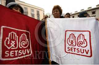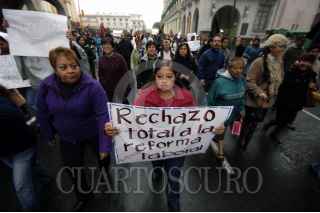 XALAPA, VERACRUZ, 31ENERO2013.- Luego de marchar por las principales calles del centro de Xalapa, cientos de integrantes del Sindicato de Trabajadores al Servicio de la Universidad Veracruzana (SETSUV) se manifestaron en la Plaza Lerdo exigiendo el 20 por ciento de aumento salarial. Los manifestantes aprovecharon para mostrar su postura en contra de la Reforma Laboral. FOTO: TONA NAVARRO /CUARTOSCURO.COM