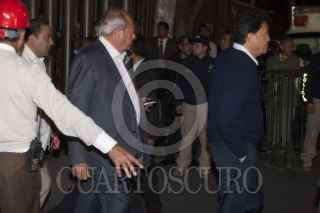 MÉXICO, D.F., 31ENERO2013.- Carlos Romero Deschamps, líder de los petroleros, y Ricardo Aldana Prieto, tesorero del sindicato petroleros, salen de la Torre de Pemex, en donde se suscitó una explosión que dejó un saldo preliminar de 25 muertos y 80 lesionados. FOTO: JUAN PABLO ZAMORA /CUARTOSCURO.COM