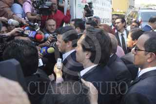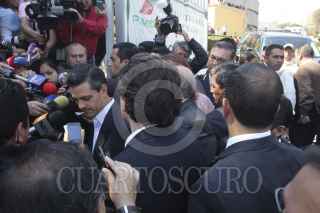 MÉXICO, D.F., 01FEBRERO2013.- Enrique Peña Nieto, presidente de México, acudió a visitar a las personas heridas que se encuentran en el Hospital de Pemex Picacho, ubicado al sur de la ciudad, al terminar su encuentro ofreció una rueda de prensa, hasta el momento se desconocen las causas del estallido en la Torre de Pemex, y la cifra de muertos aumentó a 33. FOTO: SAÚL LÓPEZ /CUARTOSCURO.COM