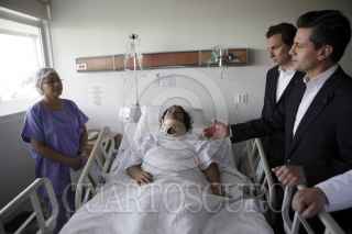 MÉXICO, D.F., 01FEBRERO2013.- El Presidente Enrique Peña Nieto realizó esta mañana un recorrido por el Hospital Central Sur de Alta Especialidad de Petróleos Mexicanos (Pemex), a fin de visitar a los lesionados del incidente registrado ayer en el edificio administrativo de la paraestatal, que se encuentran internados en ese nosocomio. Acompañado por el Director General de PEMEX, Emilio Lozoya Austin, y el Director General del hospital, el Jefe del Ejecutivo de la Nación dialogó con los heridos y sus familiares, a quienes les expresó su apoyo y solidaridad en estos momentos, y les deseó una pronta recuperación. FOTO: PRESIDENCIA /CUARTOSCURO.COM