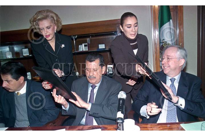 Claus Vowobesor, presidente de la Barra Mexicana de Abogados, diego Fernades de Cevallos, senador de fracción panosta, durante la firma de convenio de colaboración entre ambas dependencias. FOTO: Especial/CUARTOSCURO.COM