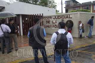VILLAHERMOSA, TABASCO, 01FEBRERO2013.- Diversos reporteros de medios informativos locales esperan a las afuera de Palacio del Poder Judicial de la Federación a que se presente Mariana Granier Calles; hija del ex gobernador Andrés Granier Melo. La joven una de las tres hijas del ex mandatario conocido como "El Quimico" esta siendo investígada por una cuenta bancaria por mas de tres mil millones de pesos; detallan que ha promovido un amparo debido a un acuerdo emitido por el juzgado cuarto de distrito. Sin embargo transcurrió el tiempo para su careo y no llego. FOTO: MARCO POLO GUZMÁN HERNÁNDEZ /CUARTOSCURO.COM