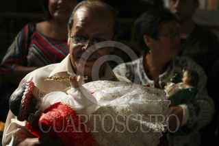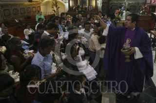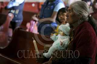 OAXACA, OAXACA, 02FEBRERO2013.- Fieles católicos dieron cumplimiento a la tradición de la presentación del "niño Jesús" o "niño dios" ante el templo, tradición conocida como la "paradita". La grey católica presentó a sus niños en misa en las diversas iglesias de la ciudad de Oaxaca, presentando más afluencia la basílica de la Soledad y la capilla del Señor del Rayo, en la Catedral Metropolitana. FOTO: ARTURO PÉREZ ALFONSO /CUARTOSCURO.COM