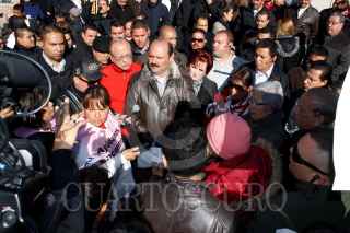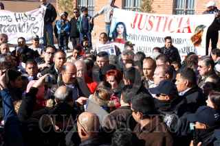 CIUDAD JUÁREZ, CHIHUAHUA, 02FEBRERO2013.- Un grupo nutrido de madres y padres de familia, así como, menores de edad, se dieron cita desde temprano para esperar a ser atendidos por el Gobernador del Estado, Cesar Horacio Duarte Jaquéz, esto justo en la plaza Misión de Guadalupe, que se ubica en la zona donde la mayoría de mujeres han desaparecido. A su llegada Duarte manifestó que "esta reunión es un encuentro muy importante lo que yo puedo confirmar es que la gran mayoría de los crímenes se han aclarado, quiero reconocer el trabajo que se hace dentro de la dependencia, y haremos lo posible para que se aclaren los hechos sucedidos en esta frontera". En el lugar lo presentes estuvieron lanzando consignas en contra del gobierno por las nulas acciones de búsqueda de las mujeres desaparecidas. FOTO: NACHO RUÍZ /CUARTOSCURO.COM