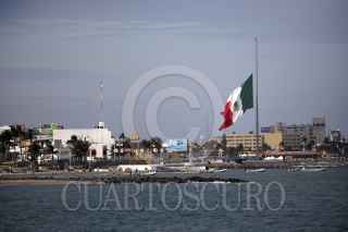 VERACRUZ, VERACRUZ., 02FEBRERO2013.- En el municipio de Veracruz, desde muy temprano, fue izada la Bandera de México a media asta, esto en la Plaza de la Soberanía, en señal de luto por las víctimas del siniestro ocurrido en el edificio B2 de Pemex. FOTO: FÉLIX MÁRQUEZ /CUARTOSCURO.COM