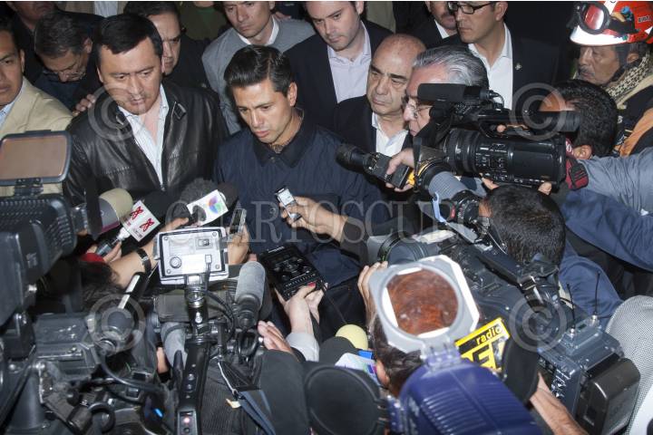 MÉXICO, D.F., 03FEBRERO2013.- El presidente Enrique Peñan Nieto, el Secretario de Gobernación y el Procurador General de la República, Jesús Murillo Karam arribaron alrededor de las 22:30 hrs del Sábado al edificio B-2 del complejo administrativo de PEMEX, a supervisar las labores de rescate, ya que oficialmente se encuantran desaparacidas cuatro personas que se presumen se encuantran en el sótano que colapsó, los funcionarios se retiraron al rededor de la 01:30 hrs de este Sábado. FOTO: FRANCISCO RODRÍGUEZ /CUARTOSCURO.COM