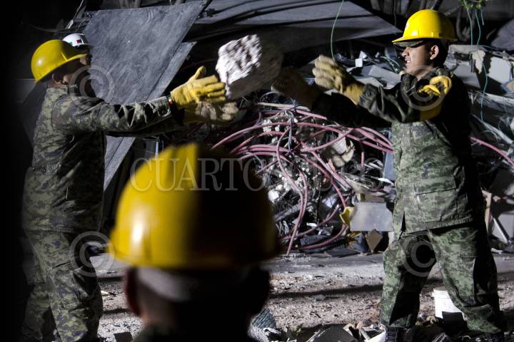 MÉXICO, D.F., 03FEBRERO2013.- Personal de Pemex traslada en camilla el cuerpo de una persona encontrada entre los escombros la madrugada del domingo donde personal de la Secretaría de Marina, Ejército, Policía Federal y Topos de México realizan labores de remoción de escombros en el sótano colapsado del edificio B-2 de la Torre Ejecutiva de Pemex la cual el pasado 31 de enero sufrió una explosión que ha cobrado la victima de 34 trabajadores y más de 100 lesionados. FOTO: MISAEL VALTIERRA / CUARTOSCURO.COM