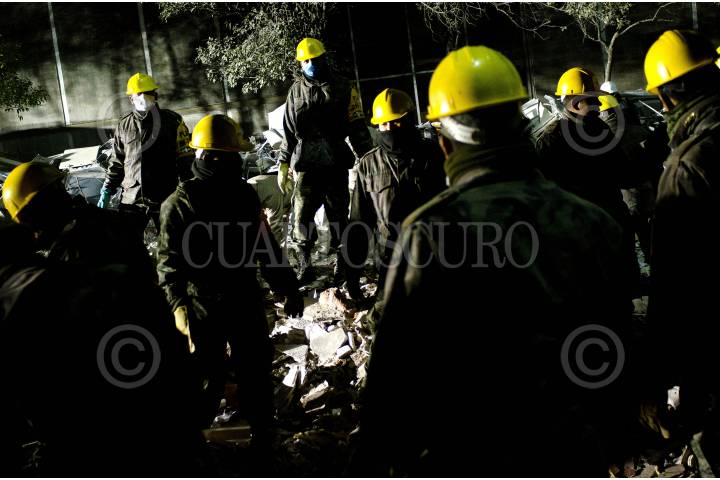 MÉXICO, D.F., 03FEBRERO2013.- Personal de Pemex traslada en camilla el cuerpo de una persona encontrada entre los escombros la madrugada del domingo donde personal de la Secretaría de Marina, Ejército, Policía Federal y Topos de México realizan labores de remoción de escombros en el sótano colapsado del edificio B-2 de la Torre Ejecutiva de Pemex la cual el pasado 31 de enero sufrió una explosión que ha cobrado la victima de 34 trabajadores y más de 100 lesionados. FOTO: MISAEL VALTIERRA / CUARTOSCURO.COM