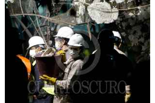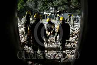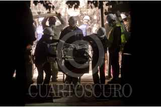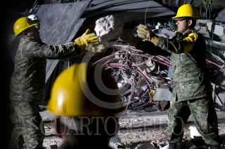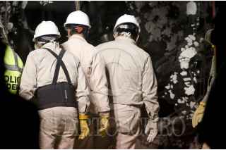 MÉXICO, D.F., 03FEBRERO2013.- Personal de Pemex traslada en camilla el cuerpo de una persona encontrada entre los escombros la madrugada del domingo donde personal de la Secretaría de Marina, Ejército, Policía Federal y Topos de México realizan labores de remoción de escombros en el sótano colapsado del edificio B-2 de la Torre Ejecutiva de Pemex la cual el pasado 31 de enero sufrió una explosión que ha cobrado la victima de 34 trabajadores y más de 100 lesionados. FOTO: MISAEL VALTIERRA / CUARTOSCURO.COM