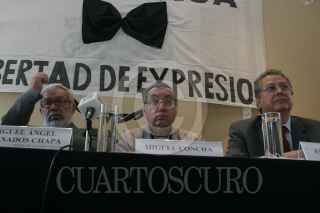 MEXICO, D.F. 14JULIO2005.- Los periodistas Miguel Ángel Granados Chapa, Miguel Concha y Ericel Gómez, en la conferencia de prensa donde abordarón el tema de la libertad de expresión en Oaxaca. FOTO: Osvaldo Aguilar/CUARTOSCURO.COM