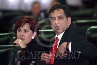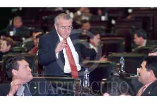 El senador panista Juan José Rodriguez Pratts, comenta la votación con su homólogo Benjamin Gallegos bdurante la sesión ordinaria en el Senado de la República. FOTO: Susana Navarrete/CUARTOSCURO.COM l