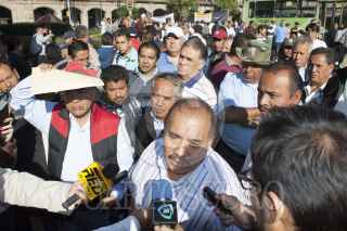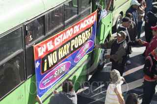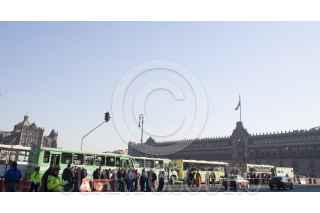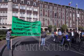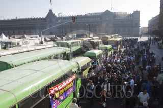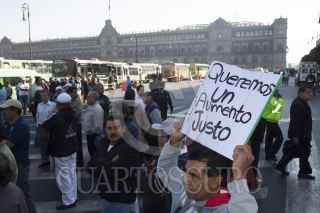 MÉXICO, D.F., 06FEBRERO2013.- Chóferes de diversas rutas de transporte público del DF se concentraron en el Zócalo para manifestarse y pedir aumento en las tarifas del pasaje, los inconformes pidieron una audiencia con el Jefe de Gobierno Miguel Ángel Mancera. FOTO: MOISÉS PABLO /CUARTOSCURO.COM