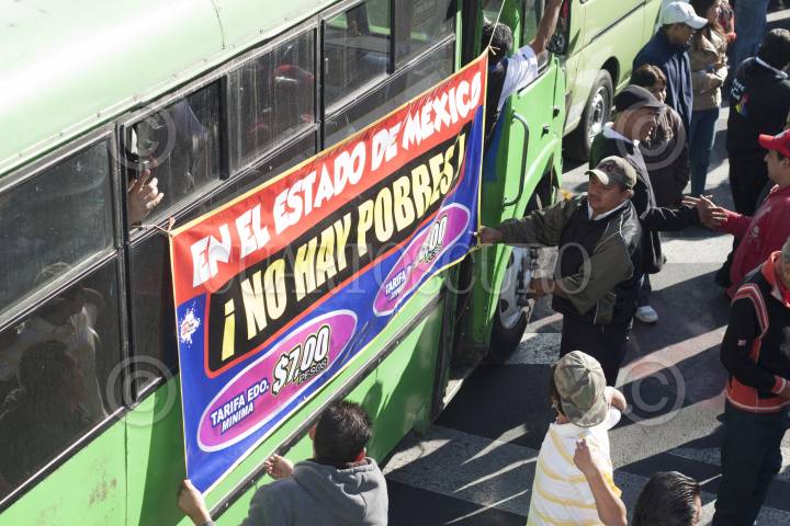MÉXICO, D.F., 06FEBRERO2013.- Chóferes de diversas rutas de transporte público del DF se concentraron en el Zócalo para manifestarse y pedir aumento en las tarifas del pasaje, los inconformes pidieron una audiencia con el Jefe de Gobierno Miguel Ángel Mancera. FOTO: MOISÉS PABLO /CUARTOSCURO.COM