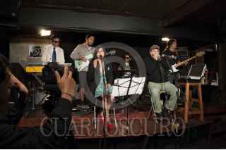 MÉXICO, D.F., 06FEBRERO2013.- La banda de rock mexicana Tex-Tex, conformada por los hermanos Mújica, Lalo Tex, Chucho Tex y el baterista Alex, quien suple temporalmente a Paco Tex, durante la sesión del "palomazo" en un bar de la Condesa rumbo al concierto Vive Latino 2013 el próximo mes de marzo. FOTO: DIEGO SIMÓN SÁNCHEZ /CUARTOSCURO.COM