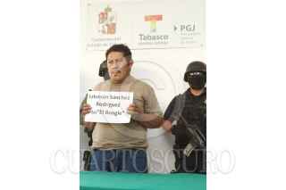 VILLAHERMOSA, TABASCO, 06FEBRERO2013.- Salomón Sánchez Rodriguez alias "El Boogie" fue presentado en las instalaciones de la Policía Ministerial bajo un fuerte dispositivo de seguridad. Minutos antes en rueda de prensa, Fernando Valenzuela Pernas, procurador local junto a Luis Crescencio Sandoval González, comandante de la 30 Zona Militar y Audomaro Martínez Zapata, secretario de Seguridad Pública, revelaban que el antes detenido es un peligroso secuestrados que operaba en los municipios de Huimanguillo, Cardenas y Cunduacan. FOTO: MARCO POLO GUZMÁN HERNÁNDEZ /CUARTOSCURO.COM