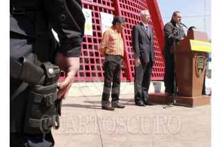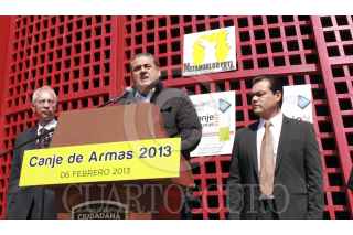 CIUDAD NEZA, ESTADO DE MÉXICO, 06FEBRERO2013.- Salvador Neme Sastre, titular de la SSC, Juan Zepeda, edil de Neza, y Jorge Amador Amador, director de seguridad pública de Neza, anunciaron que el próximo Lunes iniciara el canje de armas en el municipio. FOTO: CUARTOSCURO.COM