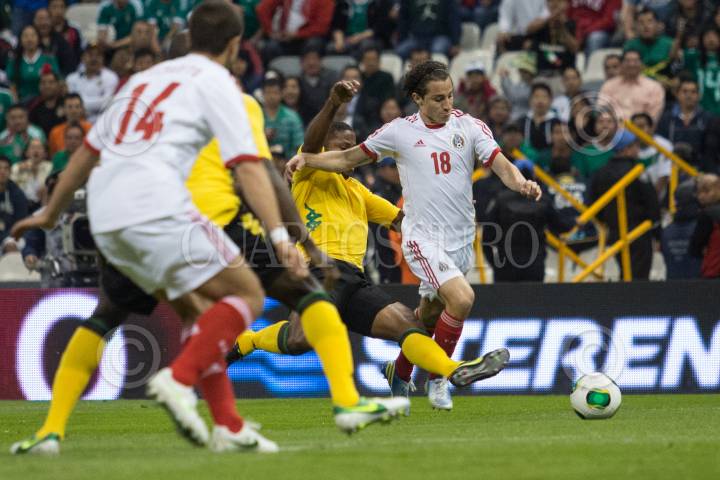 MÉXICO, D.F., 06FEBRERO2013.- Andrés Guardado durante el partido correspondiente a la Hexagonal Final de la Eliminatoria Mundialista de Concacaf rumbo a Brasil 2014, entre México vs Jamaica y llevado acabo en el estadio Azteca. FOTO: MISAEL VALTIERRA / CUARTOSCURO.COM