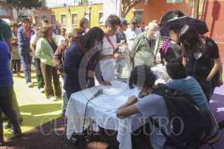 MÉXICO, D.F., 07FEBRERO2013.- Habitantes de San Pedro Mártir en la delegación Tlalapan, se reunieron en el kiosko de la localidad para mantener una reunión con autoridades delegacionales y representantes de la empresa Wal-Mart para expresarle su inconformidad ante dicha construcción de la tienda de autoservicio. Hace dos días en el Instituto de Verificación Administrativa del Distrito Federal, clausuró el predio donde se pretende construir dicho proyecto. FOTO: SAÚL LÓPEZ /CUARTOSCURO.COM