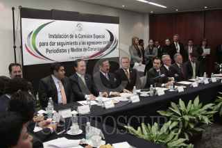 MÉXICO, D.F., 07FEBRERO2013.- Se llevó a cabo la instalación de la comisión especial para dar seguimiento a las agresiones contra Periodistas y Medios de Comunicación. En la mesa estuvo Manuel Granados, coordinador de los senadores del PRD, Emilio Gamboa, coordinador de los senadores del PRI, Jua Francisco Ealy Ortiz, director y dueño de El Universal, Marco Antonio Blasquez Salinas, Ernesto Cordero, presidente de la mesa directiva del Senado, Jacobo Zabludovsky, periodistas de Grupo Radio Centro, y Manuel Bartlett, senador del PT. FOTO: CUARTOSCURO.COM