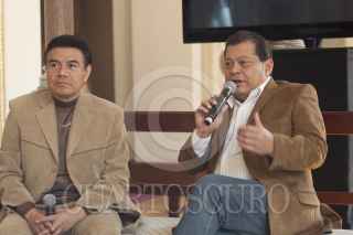 MÉXICO, D.F., 08FEBRERO2013.- El compositor Gil Rivera durante la conferencia de prensa de Jorge Massías, autor Lastima que seas ajena y Nube Viajera, entre otras, en la cual se anunció su concierto para conmemorar sus 40 años como creador de canciones, el espectáculo se realizará el 15 de febrero a las 20:00 en el Teatro Esperanza Iris y se llamará "Con la misma piedra". FOTO: MOISÉS PABLO / CUARTOSCURO.COM
