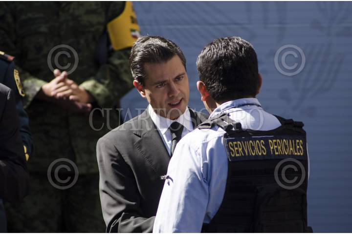 MÉXICO, D.F., 08FEBRERO2013.- Emilio Lozoya, Director de Petróleos Mexicanos (PEMEX); Pedro Joaquín Coldwell, Secretario de Energía; Miguel Ángel Osorio Chong, Secretario de Gobernación y Enrique Peña Nieto, Presidente de México, durante el homenaje a las 37 victimas de la explosión en el edificio B2 de la Torre de PEMEX, el cual encabezó. FOTO: MISAEL VALTIERRA / CUARTOSCURO.COM