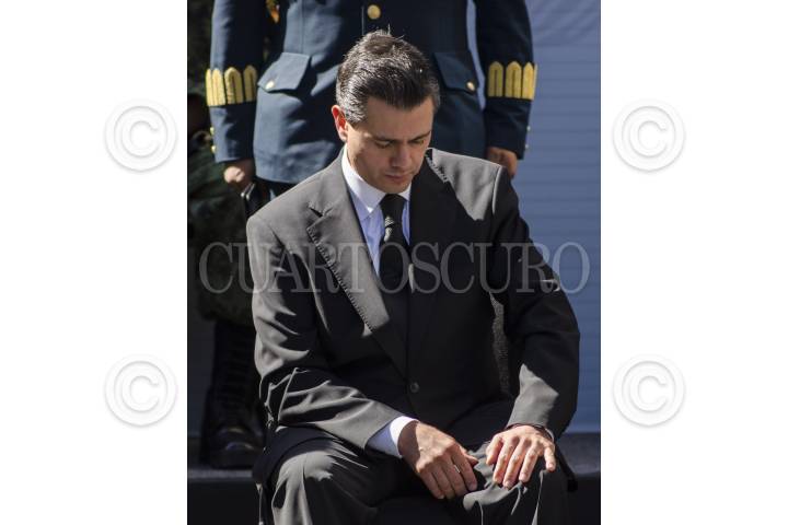 MÉXICO, D.F., 08FEBRERO2013.- Emilio Lozoya, Director de Petróleos Mexicanos (PEMEX); Pedro Joaquín Coldwell, Secretario de Energía; Miguel Ángel Osorio Chong, Secretario de Gobernación y Enrique Peña Nieto, Presidente de México, durante el homenaje a las 37 victimas de la explosión en el edificio B2 de la Torre de PEMEX, el cual encabezó. FOTO: MISAEL VALTIERRA / CUARTOSCURO.COM