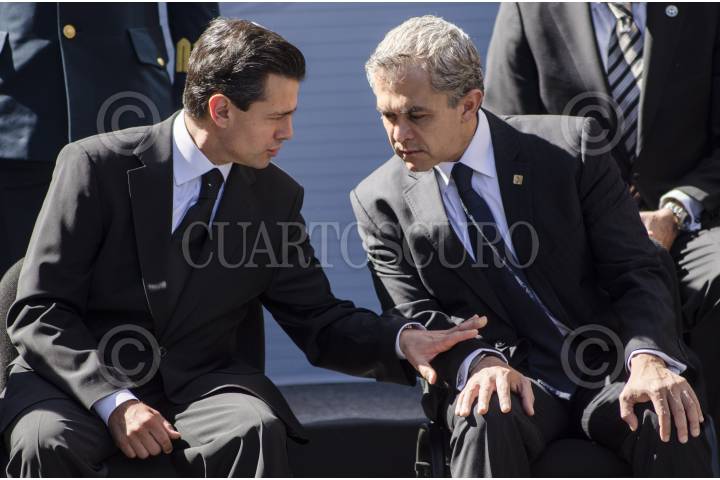 MÉXICO, D.F., 08FEBRERO2013.- Emilio Lozoya, Director de Petróleos Mexicanos (PEMEX); Pedro Joaquín Coldwell, Secretario de Energía; Miguel Ángel Osorio Chong, Secretario de Gobernación y Enrique Peña Nieto, Presidente de México, durante el homenaje a las 37 victimas de la explosión en el edificio B2 de la Torre de PEMEX, el cual encabezó. FOTO: MISAEL VALTIERRA / CUARTOSCURO.COM