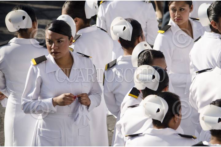 MÉXICO, D.F., 09FEBRERO2013.- Integrantes de la Escuela Militar de Enfermeras, previo al inicio del C Aniversario de la Marcha de la Lealtad en el Castillo de Chapultepec. FOTO: MISAEL VALTIERRA / CUARTOSCURO.COM