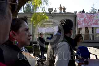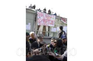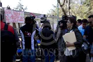 MÉXICO, D.F., 12FEBRERO2013.- Laura Muñoz Corona, Directora del Colegio de Ciencias y Humanidades plantel Naucalpan, dio lectura a un comunicado después de ser cancelada la mesa de dialogo con los estudiantes que mantiene toma las instalaciones de la Dirección General de CCH en Ciudad Universitaria. FOTO: GUILLERMO PEREA /CUARTOSCURO.COM