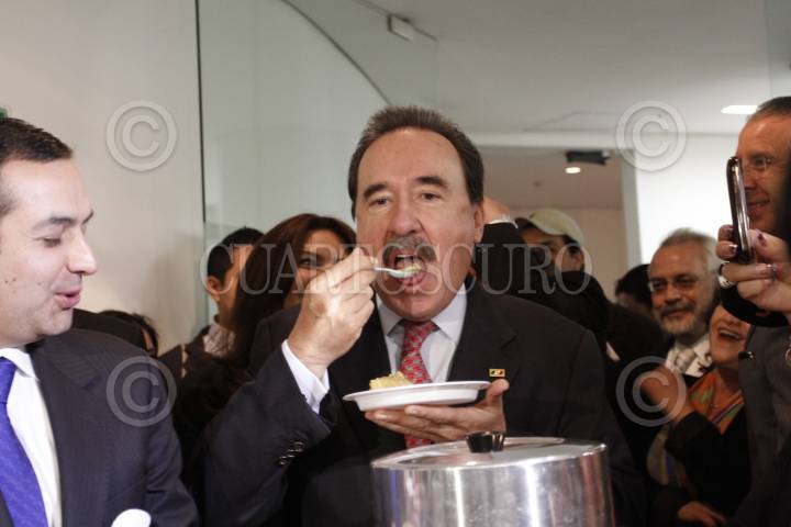 MÉXICO, D.F., 14FEBRERO2013.- Los senadores Miguel Barbosa, PRD, Jorge Emilio González Martinez, PVEM, Ernesto Cordero, PAN, y Emilio Gamboa, PRI, compartieron la tamaliza con los reportero de la fuente del Senado en la sala de prensa. FOTO: MOISÉS PABLO /CUARTOSCURO.COM