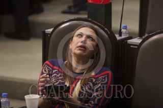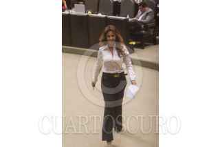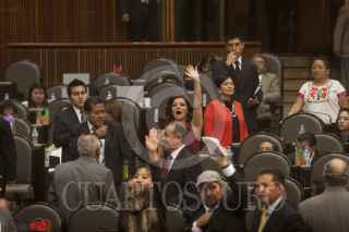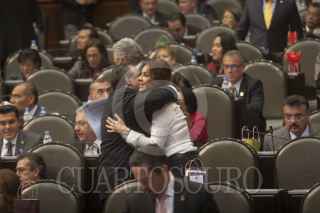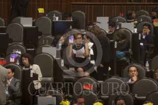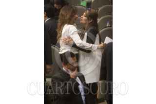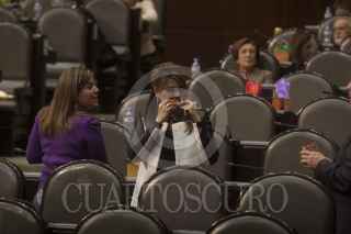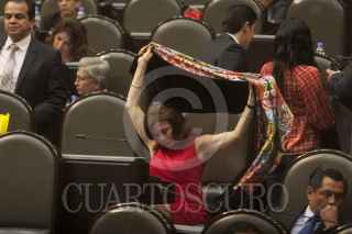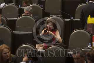 MÉXICO, D.F., 14FEBRERO2013.- La diputada panista, Aurora Aguilar, regala chocolates durante la sesión ordinaria en San Lázaro. En la foto, su compañera de bancada La diputada Alejandra López Noriega abre un paquete de los chocolates obsequiados. FOTO: JUAN PABLO ZAMORA /CUARTOSCURO.COM